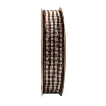 Micomon Brown and White Gingham Ribbon Brown Gingham Ribbon 25 Yards Each Roll 100% Polyester (5/8", Brown)