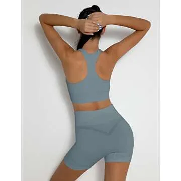 Micoson Womens Seamless Workout Sets Two Piece Exercise Outfits Ribbed Racerback Activewear Sets