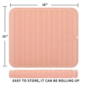 MicoYang Silicone Dish Drying Mat for Multiple Usage,Easy clean,Eco-friendly,Heat-resistant Silicone Mat for Kitchen Counter or Sink,Refrigerator or Drawer Liner Pink XL 18 inches x 16 inches