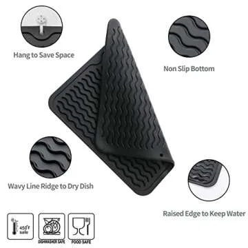 Show moreThe MicoYang Silicone Dish Drying Mat is the ultimate multifunctional accessory for your culinary space, designed for versatility and practicality. Measuring at a handy 12 inches x 12 inches, this mat is equally effective as a kitchen countertop pad, a sink liner, a refrigerator or drawer organizer, or even as a heatproof surface to protect your counters from hot pots and pans. Crafted from high-quality, BPA-free food-grade silicone, it provides a safe and eco-friendly option for your everyday use. Elevate your kitchen organization with this sleek, black silicone mat that promises to keep your spaces tidy and hygienic.