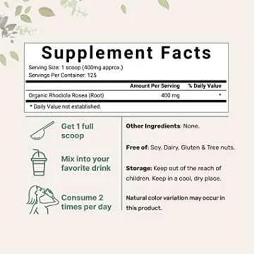 This 50-gram pouch offers you a concentrated supply of pure rhodiola powder – equivalent to over four months worth of servings when using just one scoop of approximately 400mg per serving. It’s an ideal choice not only for enhancing physical performance and stamina but also for boosting mood and alleviating anxiety. Carefully formulated without any fillers, preservatives, or artificial flavors, this supplement is certified non-GMO, ensuring that you’re only incorporating pure, wholesome ingredients into your daily routine.