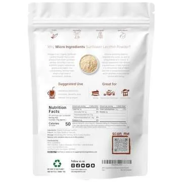 Show more Discover the amazing benefits of our Organic Sunflower Lecithin Granules Powder, a nutrient-rich addition to your daily routine. This premium product comes in a generous 1 Pound (16 Ounce) package, offering you a versatile option to boost your nutrition without compromising on your health values. Sourced from non-GMO sunflowers and processed using a cold-pressed method, this lecithin powder is completely vegan friendly and free from any harmful additives.