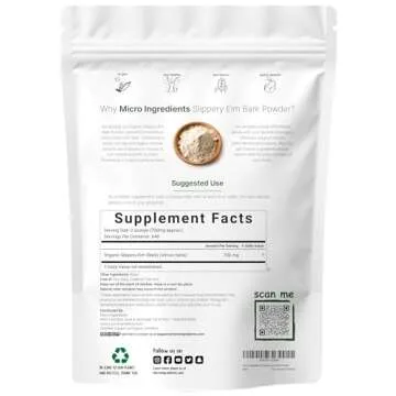 Micro Ingredients Sustainably US Grown, Organic Slippery Elm Bark Powder, 1 Pound (648 Servings), Helps Soothe The Throat and Coughing, No Irradiated, No Contaminated, No GMOs, Pet Friendly