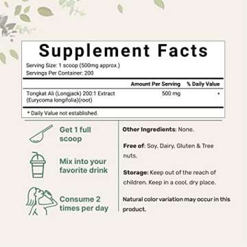 Users have found that a daily regimen can increase vitality, energy, and even improve mood. Whether you're hitting the gym or just aiming to wake up with more energy, this Tongkat Ali supplement can be a game-changer! Enjoy it naturally for a healthier lifestyle that incorporates added fun and experimentation with your daily nutrition.