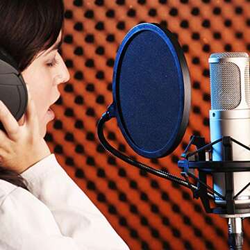Microphone Pop Filter 6 inch Round Shape Wind Screen Mask Dual Layer Gooseneck Flexible for Blue Yeti Microphones