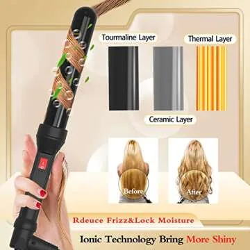 MICSTA Negative Ions Curling Iron Long Barrel Ceramic Coated, Dual Voltage Curling Wand Quick Heating, Beach Wave Hair Curler Fast Styling for Long Hair, with Glove and Mat, Black1-1/4" Christmas Gift
