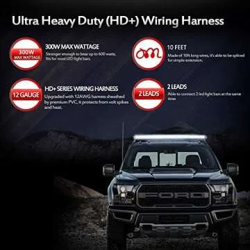 Show moreIntroducing the MICTUNING HD+ 12 Gauge LED Light Bar Wiring Harness Kit, a high-performance wiring solution designed specifically for off-road enthusiasts and professionals alike. This ultra heavy-duty harness features robust **12-gauge wires** capable of powering all your auxiliary lights, including light bars, HID work lights, spotlights, and fog lights. With this wiring kit, your expensive high-power LED lights deserve the superior quality and reliability it brings.