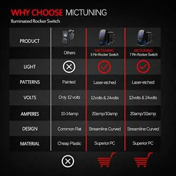 When evaluating the MICTUNING MIC-LSW1 against similar products, it becomes evident why it stands out. Many competitors lack the robust durability and aesthetic appeal of this switch. While others may offer basic functionality, MICTUNING combines advanced features with a stylish design, ensuring it not only performs excellently but also looks great in any vehicle. The ease of installation and versatility with a 20A rating also place it ahead of others that offer limited compatibility.
