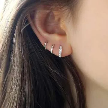 Discover elegance in simplicitylightweight and comfortable but also uniquely designed to enhance your look without overwhelming it. Their minimal yet striking appeal makes them ideal for layering with other silver hoop earring sets, whether you're...