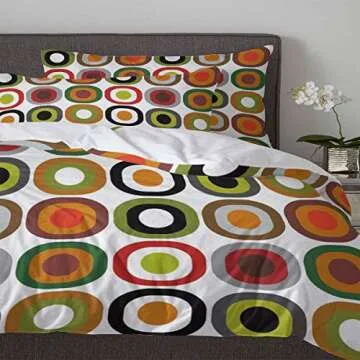 Mid Century Modern Bedding Duvet Covers Set 3 Pieces Queen, Geometric Ultra Soft Breathable Bedding Set with Corner Ties and Zipper Closure(1 Bed Covers + 2 Pillow Shams), Washed Cotton