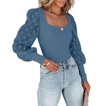 miduo Women's Ribbed Knit Tops - Long Sleeve Fashionable Blouses for Every Occasion