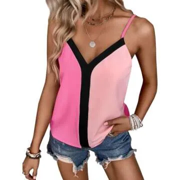 miduo Womens Summer V Neck Strappy Tanks Tops Racerback Straps Loose Camisole Shirts Sleeveless Tops Blouses Tanks Tops S