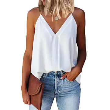 Miduo Womens Tanks Spring Summer Soft Fashion V Neck Strappy Tank Tops Casual Sleeveless Shirts Blouses Tank White L