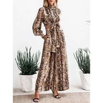 Miessial Women's 2 Pieces Sexy Leopard Jumpsuit Club Party Weeding Wear Tie Waist Long Sleeves Jumpsuit
