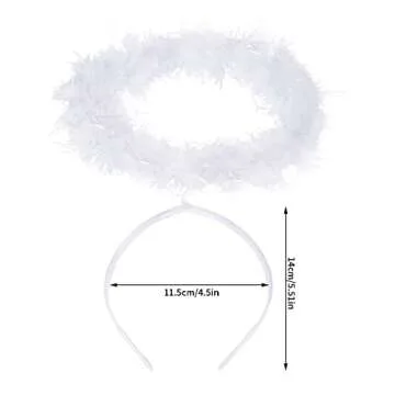 Show more If you're looking for the perfect accessory to elevate your angel-themed costume, look no further than the QUALITY ANGEL HALO HEADBAND. Crafted from durable fake feather and plastic, this halo headband promises not only style but also comfort, ensuring you can wear it throughout any event without discomfort. Its elegant white color and feather design make it a standout piece that beautifully complements any angel costume.