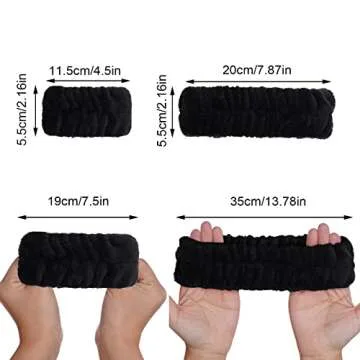 mifengda 3pcs Women's Microfiber Headbands & Wrist Washbands for Spa, Facial, Face Washing, Shower, Makeup, and Bath (Black)