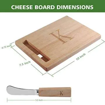 Show more Introducing the Miicol Wood Charcuterie Board, an exceptional addition to your culinary experience that seamlessly blends functionality with elegance. Crafted from solid, natural oak, this vibrant cutting board measures 10 inches in length, 7.5 inches in width, and 0.7 inches in height, making it perfectly sized for a plethora of culinary needs. Whether you are preparing scrumptious snacks, cutting vegetables, or elegantly serving appetizers, this versatile board meets all your kitchen demands while doubling as a stunning decorative piece. The highlight of this board is its unique personalization feature - a deep engraving of your initials on its surface is complemented by a stylish stainless steel cheese knife, enhancing both its aesthetic appeal and personalized charm.