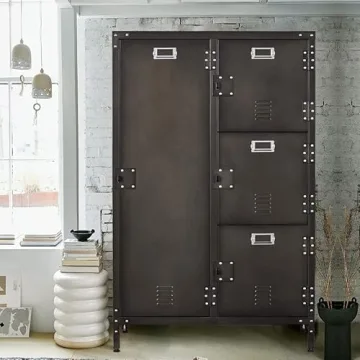 This remarkable cabinet features a 4-door locking mechanism equipped with either a combination or keypad lock, safeguarding your valuables. Each shelf can hold up to 50 lbs, allowing you to store everything from clothing to tools without worry. The true charm of this product lies in its unique retro design, highlighted by a durable powder-coated finish and attractive rivet decorations that add character and warmth to any room.