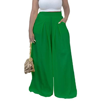Miiyana Green Flowy Pants Women High Waist Palazzo Trousers Stretchy Loose Fit XXL