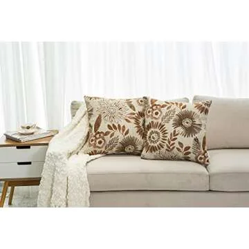 Show moreTransform your living space with the Mika Home Pack of 2 Decorative Throw Pillow Covers, designed to bring a touch of elegance and comfort to any room. Crafted from premium jacquard fabric and featuring a beautiful sunflower pattern in warm brown and cream tones, these covers measure a generous 20x20 inches, making them perfect for couches, beds, or even accent chairs. Each set includes two covers that not only enhance the aesthetic of your decor but also add a cozy and inviting atmosphere to your home.