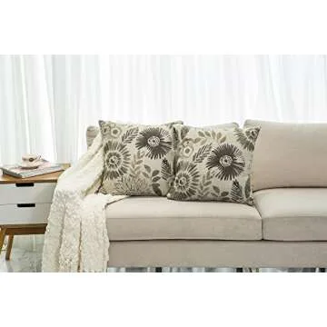 Mika Home Pack of 2 Decorative Throw Pillows Cases Cushion Cover for Sofa Couch Bed,Sunflower Pattern,20x20 Inches,Grey Cream