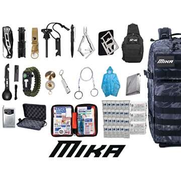 Show morePrepare for the unexpected with the MIKA Premium 72 Hours Emergency Bug Out Survival Gear Equipment Backpack. This meticulously designed survival backpack is not just an ordinary bag; it's a comprehensive preparedness kit crafted in collaboration with Special Force veteran partners. Their firsthand experience ensures that every feature serves a crucial purpose in emergency situations like hurricanes, wildfires, floods, or even earthquakes. Built to accommodate up to four people, this versatile backpack is also your best companion for hiking, camping, and RV adventures, making it a perfect blend of functionality and reliability.