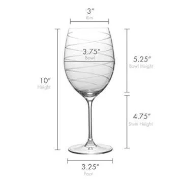 Standing tall at 10 inches high and with a diameter of 3-3/4 inches, each glass holds a generous 24-fluid-ounce capacity, allowing ample space for swirling and aerating red wine. The beautifully crafted, lead-free crystal ensures not only striking visual appeal but also a quality feel in your hand. The large bowls are perfect for revealing the full aromas and flavors of your favorite vintages.