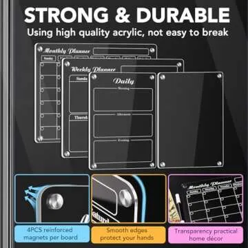 MIKEDE Acrylic Calendar for Fridge, 4 Pack Magnetic White Board Calendar Dry Erase, Reusable Planning Board Set with Strong Small Magnets, Clear Weekly and Monthly Calendar for Refrigerator, 6 Markers