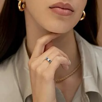 MILACOLATO S925 Sterling Silver Rings for Women Men 18K White Gold Plated Stackable Statement Thin Plain Thumb Ring High Polished Wedding Band Ring Comfort Fit Size 7, 4mm