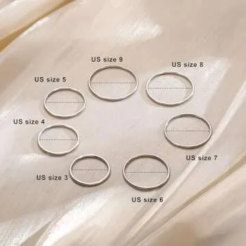 Show more Embrace the essence of minimalism with our stunning MILACOLATO Silver Rings for Women. This exquisite set features a collection of 7 elegantly crafted rings made from high-grade stainless steel and luxurious gold plating. Ranging in US sizes from 3 to 9, each ring is designed with a delicate 1mm thickness, making them the perfect accessory for stacking or wearing as standalone pieces. Whether you’re dressing up for a special occasion or enhancing your everyday look, these versatile rings add a chic touch to any outfit.