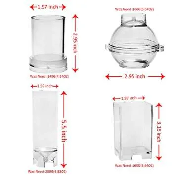Unleash your creativity and elevate your candle-making skills with the MILIVIXAY 4pcs Plastic Candle Molds. This comprehensive set includes a pillar mold with a dome top, a cylinder mold, a sphere mold, and a rectangle mold, offering versatility that meets the needs of both novice and experienced candlemakers alike. Each mold is expertly crafted from high-quality, durable plastic that can withstand frequent use, ensuring that you can create beautiful candles time and time again.