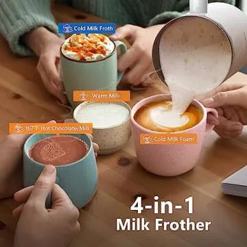 Show moreTransform your morning routine with the Spacekey 4-in-1 Electric Milk Frother and Steamer. Perfect for coffee enthusiasts, this exceptional frother is designed to create a rich and creamy milk foam, allowing you to whip up barista-level beverages from the comfort of your home. Whether you prefer a comforting cappuccino, a luscious macchiato, or an indulgent hot chocolate, this powerful appliance is equipped to handle almond milk, oat milk, or full-fat dairy, making it incredibly versatile for all your frothing needs. With rapid heating capabilities that reach up to 167℉, significantly higher than the standard 149℉ offered by many typical models, you're guaranteed the ideal temperature for delightful steamed milk every time.