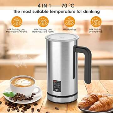 Milk Frother, 4 in1Electric Milk Steamer Stainless Steel, 10oz Automatic Hot and Cold Foam Maker with Buzzer Reminder, for Coffee, Latte, Cappuccinos, Macchiato, Hot Chocolate