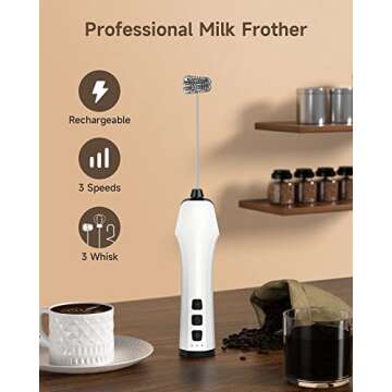Transform your coffee-drinking experience into a café-level delight with the Milk Frother Handheld. This exceptional tool is not just a frother; it’s a mini blender and mixer rolled into one, perfect for creating creamy, dreamy froth for your coffee, lattes, cappuccinos, and more. Its USB rechargeable battery ensures you can enjoy velvety foam anytime and anywhere, without the hassle of changing batteries. With three high-quality stainless steel whisks, functional design, and adjustable...