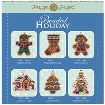 Mill Hill Gingerbread Beaded Cross Stitch Ornament Kits (2021), Set of 6 - Plus Decorative 'Needleworker' Sticker