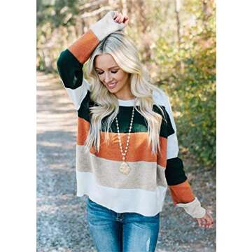 MILLCHIC Women's Long Sleeve Crew Neck Striped Color Block Casual Loose Knitted Pullover Sweater