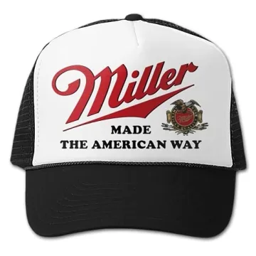Introducing the **Miller Beer Hat**, a stylish Vintage Trucker Hat that embodies the spirit of classic American craftsmanship. This cap features a high-quality design made from **100% polyester**, ensuring durability and comfort. The front is padded with a **soft foam** layer, providing an enjoyable fit for all-day wear, while the **strong double-notched snapback** and breathable **vented mesh sides and back** make it a practical accessory for your outdoor adventures. The **signature vintage trucker braid**...