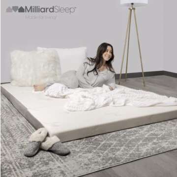 Show more The Milliard Trifold Mattress is your ultimate solution to achieving a restful night's sleep, whether at home or on the go. Designed with a high-density memory foam layer, this 6-inch full-size mattress contours perfectly to your body, alleviating pressure points and ensuring total comfort throughout the night. Its unique tri-folding design makes it incredibly portable, allowing you to easily store it or transport it whenever you need.