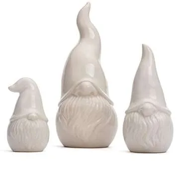 Milltown Merchants™ Ceramic Gnomes - White Contemporary Gnomes - Set of 3 - Garden Gnome Home Decor - Indoor/Outdoor Gnome Assortment
