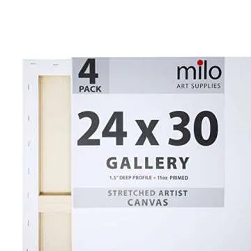 Milo Stretched Artist Canvas | 24x30 inches | 4 Pack | 1.5” Thick Profile | 11 oz Primed for Painting