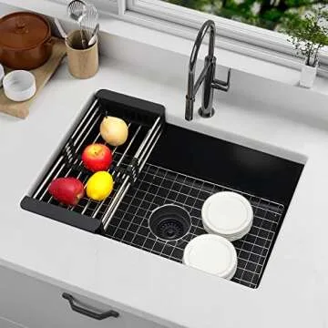 When compared to other kitchen sinks on the market, the MILOSEN Granite Composite Black Kitchen Sink stands out with its unique blend of style and functionality. Unlike traditional stainless steel sinks that scratch easily and may require more maintenance, the granite composite material offers superior durability without compromising on aesthetics. Additionally, the undermount design creates a more integrated space that further complements high-end countertops. Other sinks may lack the comprehensive sound dampening features found in this model, making it a top choice for those who prioritize a quieter kitchen environment.