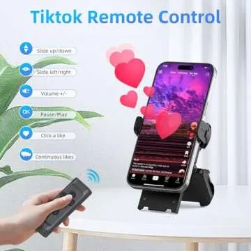 MILOUZ Remote Control Scrolling for Tiktok with Phone Stand,Page Turner for Kindle App E-Book,Bluetooth Camera Shutter Remote for iPhone, Android,iOS,iPad,Tablet (Deep Black)