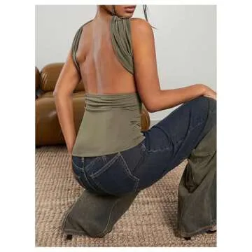 Milumia Women Ruched Strapless Halter Tube Top Open Back Slim Fit Bandeau Shirts Green X-Small