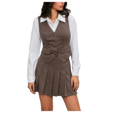 Show moreIntroducing the Milumia Women's 2 Piece Outfit, a beautifully crafted ensemble that perfectly combines sophistication and comfort. This elegant outfit features a plaid vest blazer and a pleated mini skirt, tailored for women who want to make a statement without sacrificing style. Made from soft and breathable fabrics, it promises all-day comfort, whether worn in a professional setting or during a casual outing. The stylish combination of plaid and houndstooth prints elevates this classic business attire, allowing you to stand out in any crowd.
