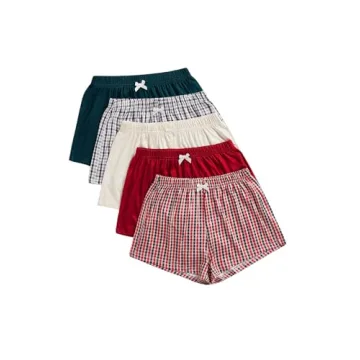 Show moreElevate your lounging experience with the Milumia Women's 5 Pack Bow Front Pajama Bottoms. Crafted from medium-stretch fabric, these sleep shorts offer unparalleled breathability and comfort, making them a perfect addition to your sleepwear collection. The unique plaid print brings a stylish twist to your nighttime ensemble, while the charming bow knot detail adds a feminine touch. Designed with an elastic waist, these shorts provide a snug yet flexible fit that moves with you, ensuring you feel great whether you're cozying up at home or drifting off to sleep.