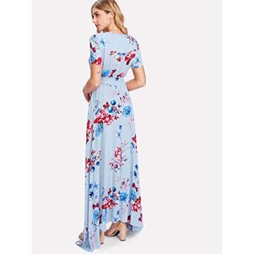 Milumia Women's Button Up Split Floral Print Flowy Party Maxi Dress Blue Small