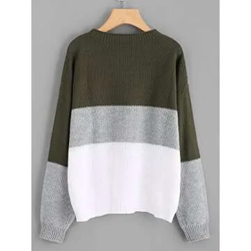 Milumia Women's Casual Drop Shoulder Color Block Striped Knitted Textured Jumper Sweater Green Medium