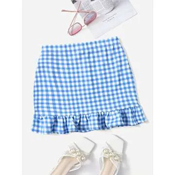 Show more Embrace your playful side with this stunning gingham print short skirt, skillfully crafted for the modern woman. Made from a slightly stretchy, soft, breathable, and comfortable fabric, this bodycon mini skirt is design perfection. Featuring a fashionable ruffle hem and a high-waisted fit, it is not just a piece of clothing but a signature statement in any wardrobe. The delightful gingham pattern adds a charming touch that is both classic and trendy, making it suitable for a variety of occasions.