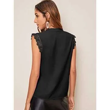 Show more Introducing the elegant Sleeveless Notch Neck Blouse, crafted from a comfortable and breathable polyester blend that features a hint of stretch, making it perfect for any occasion. This charming tank top is designed with a unique guipure lace trim that adds a touch of sophistication without compromising ease of movement. The regular fit allows for versatility, making it ideal for layering or wearing solo.