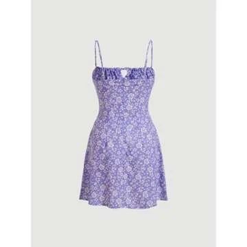 Milumia Women's Floral Mini Cami Dress Ruched Tie Front Spaghetti Strap Short Strappy Dresses Purple X-Small